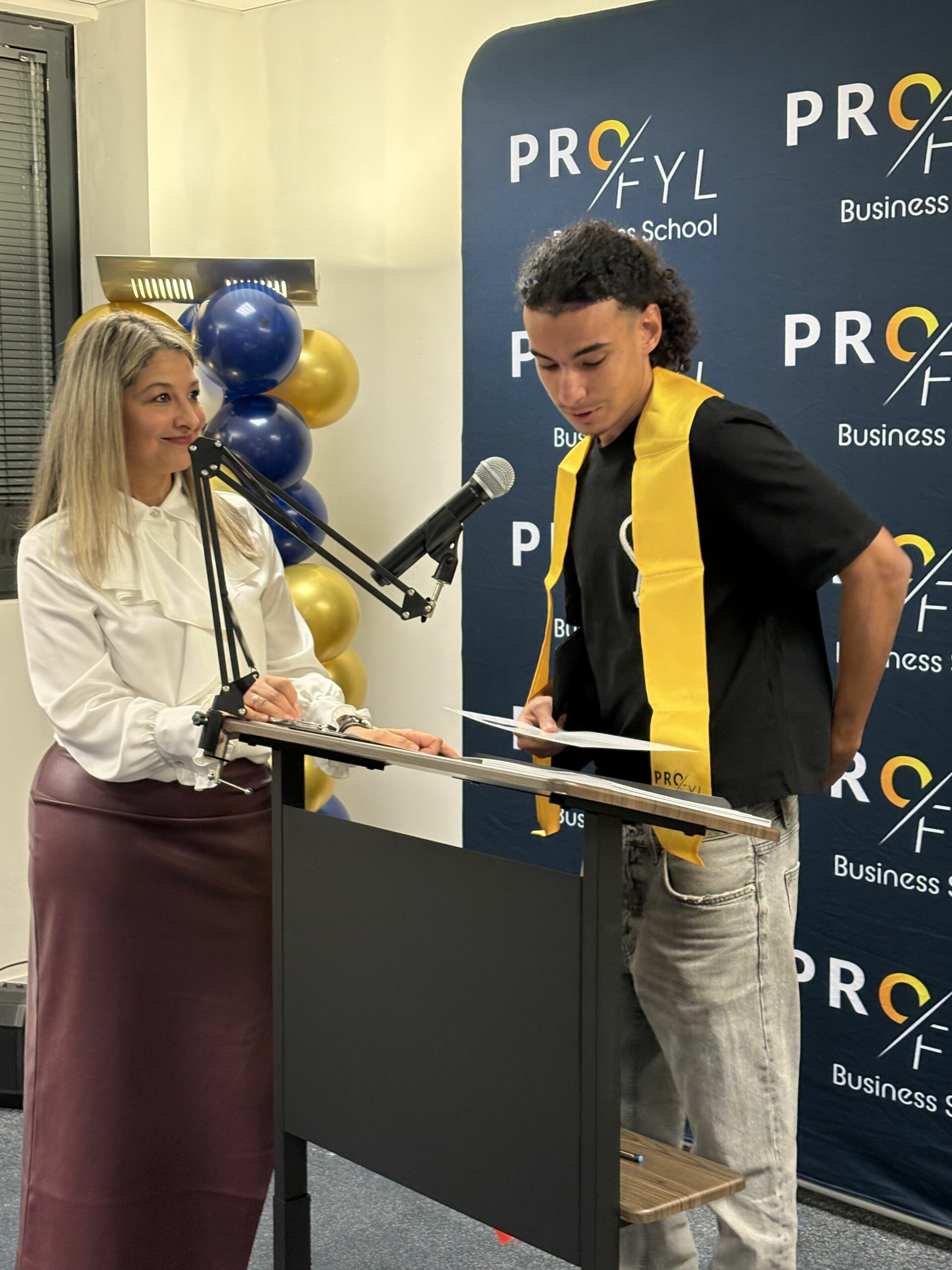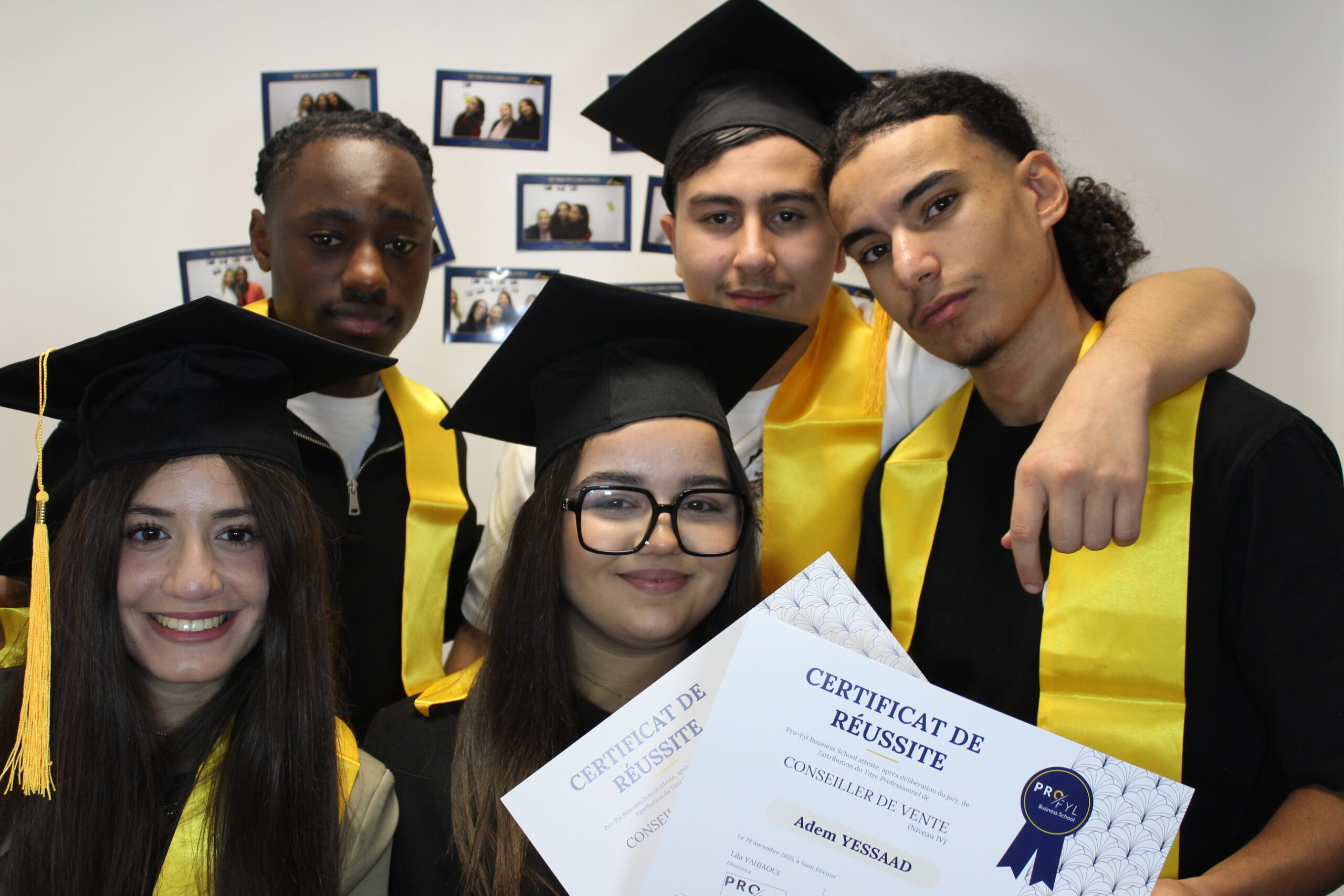 Ces images témoignent de l’ambiance unique et de l’émotion partagée lors de la cérémonie de remise des diplômes de Pro-Fyl Business School, un moment fort qui illustre la réussite et l’engagement de nos diplômés.
